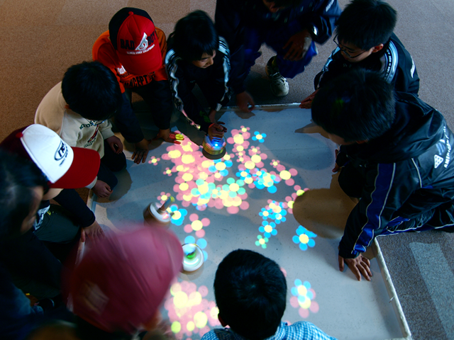 That expectation was entrusted to "go around, move on, expand", and combined an old toy, the top, with new media, the computer. The visual transitions and sound spread when you spin the top.